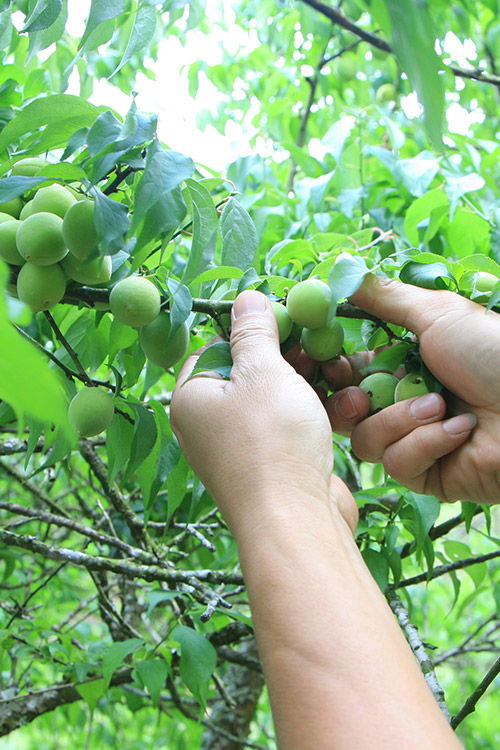 農曆年後,花朵謝去,飽滿結實的梅子掛滿枝頭,在即將到來的採梅季節,其採收的方式至今仍遵循原始方法,除低矮處果實用手採摘之外,
