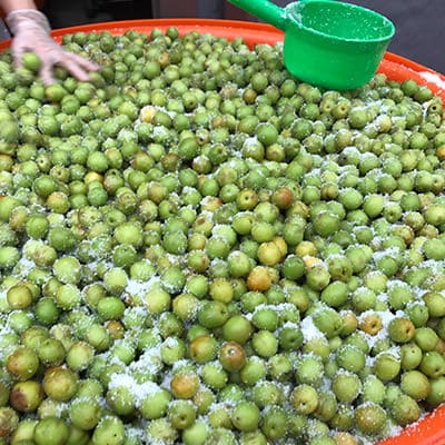 美食製造過程 梅子可生津解渴,促進新陳代謝,幫助維持消化道機能, 身體循環正常了,人體自然神清氣爽。 脆 梅 生 產 流 程 梅嶺-梅嶺位於楠西區灣丘里,舊稱「香蕉山」,後來香蕉沒落為梅樹所取代。→ 梅花元旦前後開花 → 結果累累3、4月份採收 → 篩選青梅篩選大小顆 → 洗滌 → 純糖醃製 → 成品安心檢測 → 包裝 → 成品 → 出貨 紫 蘇 梅 生 產 流 程 梅嶺-梅嶺位於楠西區灣丘里,舊稱「香蕉山」,後來香蕉沒落為梅樹所取代。→ 梅花元旦前後開花 → 結果累累3、4月份採收 → 篩選青梅篩選大小顆 → 洗滌 → 鹽醃製 → 曝曬 → 紫蘇醃製 → 成品安心檢測 → 包裝 → 成品 → 出貨 芒 果 乾 生 產 流 程 玉井有愛文芒果之鄉美名 → 芒果於每年6-7月盛產 → 使用外銷等級芒果 → 去皮 → 一顆芒果切成2片 → 削皮、切片 → 芒果烘乾 → 檢查和篩選 → 成品安心檢測 → 包裝 → 成品 → 出貨 梅嶺採梅
